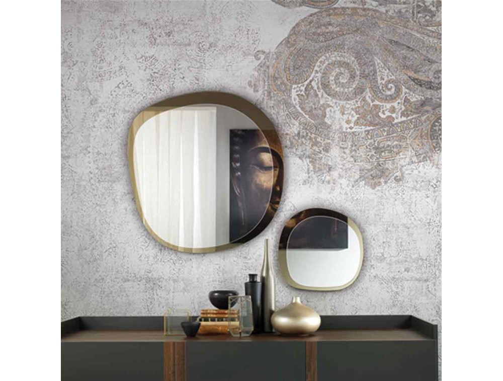 CAPODARTE Specchio FILL dalla forma sagomata, composto da due vetri sovrapposti. Cornice in nero lucido o bronzo.