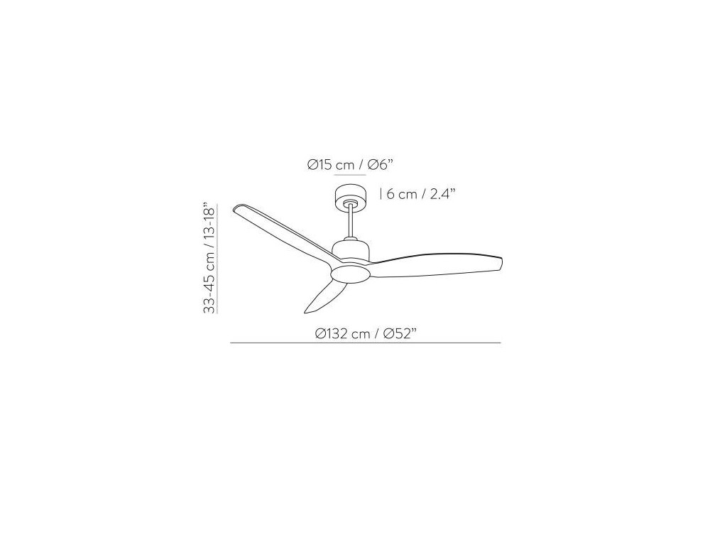 Ventilatore da soffitto provvisto di 3 pale in legno. Colore nero. Il ventilatore può essere controllato tramite telecomando o temporizzatore.