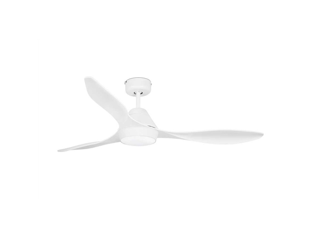 Ventilatore da soffitto realizzato con motore DC in acciaio bianco e pale in ABS bianche. 5 velocità regolabili con telecomando incluso. Funzione inversa, adatto a soffitti inclinati.